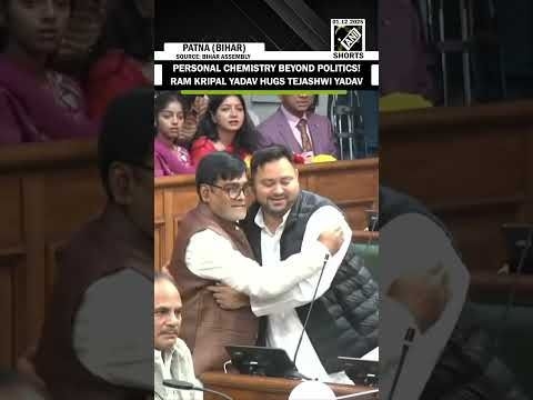 Bihar Minister Ram Kripal Yadav hugs Tejashwi Yadav after taking oath in Bihar Assembly #RamKripalYadav #TejashwiYadav ...