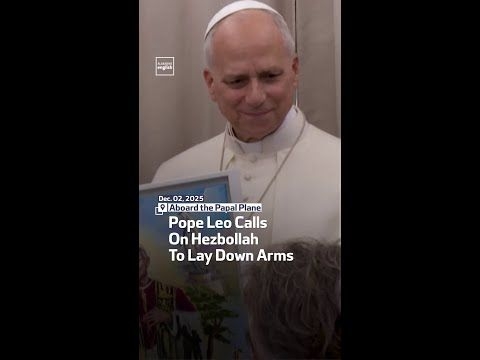 Pope Leo XIV calls on Lebanon's Hezbollah to lay down its arms and pursue dialogue, speaking to reporters aboard his flight from ...